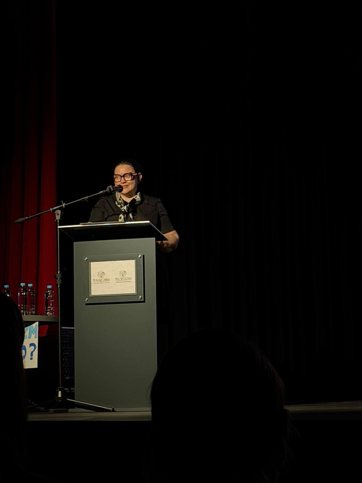 Podczas konferencji swoją wiedzą i doświadczeniem podzieliła się również Pani Dyrektor Lidia, która zaprezentowała temat dostosowań w edukacji dla uczniów ze spektrum autyzmu. W swoim wystąpieniu podkreśliła, jak istotne jest indywidualne podejście do potrzeb każdego dziecka oraz tworzenie warunków sprzyjających jego rozwojowi.